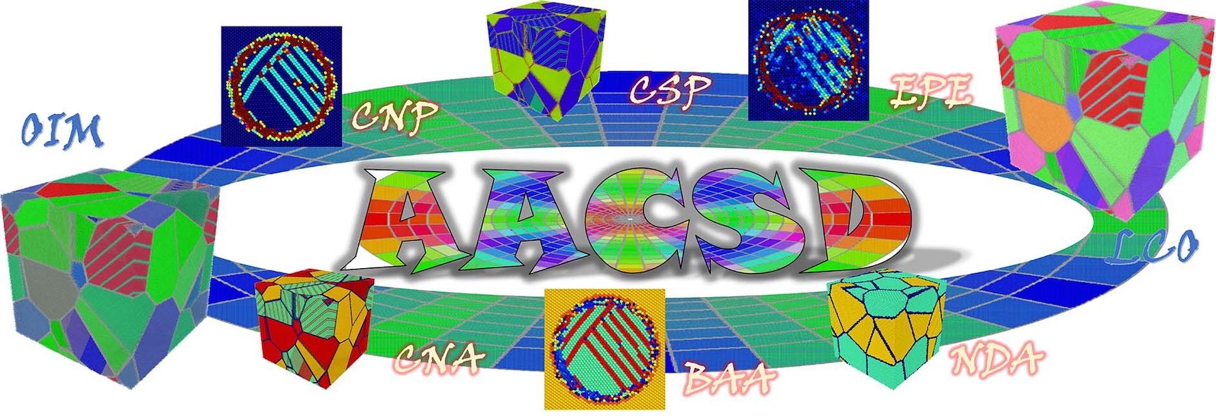 AACSD(晶体结构与缺陷的原子尺度分析仪)是一款用于处理各类原子模拟代码生成构型的命令行程序。该程序不仅集成了传统分析方法——包括过剩势能(EPE)、中心对称参数(CSP)、共同邻居分析(CNA)、邻域参数(CNP)、键角分析(BAA)和邻距分析(NDA),还创新性地开发了改进型中心对称参数(m-CSP)、取向成像图(OIM)和局域晶体取向(LCO)等新型分析方法。其中OIM与LCO方法已扩展适用于面心立方、体心立方和密排六方三种晶体结构。特别值得一提的是,AACSD可便捷地用于金属纳米复合材料的原子级分析,支持对各相组分进行独立解析,这为实时捕捉材料中多种缺陷的动态演化提供了独特研究路径。